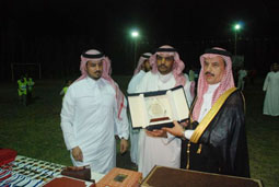 وبعد نهاية المباراة قام وكيل المحافظة بتوزيع الدروع التذكارية على اللجنة المنظمة والمشاركين في دعم ورعاية فعاليات هذه الدورة، كما سلم سعادته كأس البطولة والميداليات الذهبية لفريق الروضة، وتسلم فريق ضرماء الميداليات الفضية وكأس المركز الثاني وحصل اللاعب أحمد المشرف من فريق الروضة على كأس أفضل لاعب في الدورة واللاعب جدي الشيباني من فريق ضرماء على كأس هداف الدورة بحصيلة 6 أهداف واللاعب حسام المحمود من فريق ميسورة على كأس أفضل حارس مرمى في الدورة.