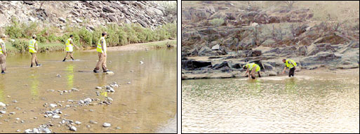 يواصل أكثر من 60 فرداً وأربعة ضباط من فرق البحث والإنقاذ بمحافظتي محايل عسير والمجاردة بمشاركة غواصين البحث عن الجثة الثالثة المفقودة لمواطنين سعوديين جرفتهم السيول مساء الثلاثاء بعين آل دريب شمال محافظة محايل.