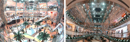كما أن بعض المحال والمراكز التجارية استخدمت الليزرات التي تضيء في الواجهات أو ترسل حزماً ضوئية متحركة للفت الأنظار.