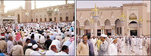 وأدى المصلون صلاة الجمعة أمس في جو مفعم بالطمأنينة والأمن والأمان والدعاء المتواصل بأن يعيد أيام هذا الشهر الكريم أعواماً عديدة على المسلمين بالخير واليمن والبركات داعين الله عزّ وجلّ أن يحفظ خادم الحرمين الشريفين الملك عبد الله بن عبد العزيز ويمده بعونه وتوفيقه على ما قام به ويقوم به لخدمة الحرمين الشريفين وخدمة أبناء العالم الإسلامي من خلال هذه التوسعة الكبرى لمسجد نبيه عليه السلام والتي وفرت الراحة والطمأنينة للحجاج والزوار والعمار.