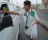 يقوم مكتب الندوة العالمية للشباب الإسلامي بالجوف بالتعاون مع فرقة الكشافة التابعة لرعاية الشباب بالجوف بتقديم وجبة الإفطار للصائمين الذين يدركهم أذان المغرب وهم في الطريق، وذلك بتقديم تمرات مع ماء ولبن في تغليف واحد، عملاً بقول المصطفى عليه أفضل الصلاة والسلام: (?ما ...>>>... |