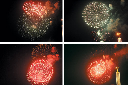 سجلت عروض الألعاب النارية في احتفالات عيد الفطر المبارك عنصراً بارزاً لجذب المواطنين والمقيمين في فعاليات العيد حيث شكَّلت لوحة فنية جميلة أضاءت سماء العاصمة في ليالي العيد، وفي هذا الصدد حرصت أمانة منطقة الرياض على تخصيص سبعة مواقع مختلفة لإطلاقها ليتمكن الجميع من رؤيتها في جميع أنحاء العاصمة، وانطلقت الألعاب النارية من استاد الملك فهد الدولي واستاد الأمير فيصل بن فهد، وجامعة الأمير سلطان، إلى جانب حديقة الدوح جنوب القرية الشعبية، ومدرسة تعليم القيادة جنوب غرب الرياض، بالإضافة إلى إطلاقها من تقاطع طريق العزيزية مع الطريق الدائري الجنوبي.. وبدأت العروض متزامنة يومياً من الساعة التاسعة والنصف مساءً وحتى الساعة 9:40 مساءً.
