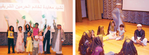 شهدت المواقع النسائية انطلاق فعاليات عيد الفطر المبارك حيث أقيم في مركز الملك عبدالعزيز التاريخي فعاليات مميزة للكبار والصغار بدت من الساعة الخامسة بالسلام الملكي والذي قدمه مجموعة من الأطفال يحملون الأعلام الخضراء ويرددون النشيد الوطني ثم القرآن الكريم بعدها كلمة رئيسة لجنة الاحتفالات مركز الملك عبدالعزيز التاريخي الإعلامية الأستاذة جواهر الدهيم هنأت فيها الحضور حيث قالت في هذا اليوم أول أيام عيد الفطر المبارك حيث تتعانق الفرحة بحضوركم فعاليات أمانة منطقة الرياض في مركز العز والإباء مركز الملك عبدالعزيز التاريخي الذي عودنا على احتضان مثل تلك الاحتفالية في هذه المناسبة السعيدة أزف لكم التهنئة ومن العايدين إن شاء الله كما أرفع أسمى آيات التهاني إلى والدنا الغالي خادم الحرمين الشريفين الملك عبدالله بن عبدالعزيز وإلى صاحب السمو الملكي الأمير سلطان بن عبدالعزيز ولي عهدنا الأمين وإلى من منحنا هذه البهجة بتوجيهاته السديدة أمير منطقة الرياض صاحب السمو الملكي الأمير سلمان بن عبدالعزيز حفظه الله وإلى أمين منطقة الرياض الدكتور الأمير عبدالعزيز بن عياف آل مقرن الذي فتح آفاقاً رحبة للفعاليات النسائية بفضل الله ثم بفضل توجيهاته وإشرافه ومتابعته الدائمة نحييكن ونرحب بكن في فعالياتنا التي تضم باقة من الألوان المتعددة والتي حرصنا فيها على التنويع والتشويق وإدخال البهجة والسرور على قلوب كافة شرائح المجتمع أهلاً بكم وكل عام وأنتم بخير، ثم قدمت الدمي لوحة أهلاً بالعيد والتي نالت إعجاب الأطفال، تلاها لوحة تراثية رائعة للعيد حيث خرجت مجموعة متقابلة من الأطفال يرتدون الملابس القديمة الدارعة والمخنق ويرددون عبارة أبي عيدي.. عادت عليكم في حال زينة - جعل الفقر ما يدخل عليكم ثم تأتي الدمي عيد - سعيدة - فرحانة بالزنابيل المملوءة بالعيدية ويوزعونها على الأطفال الحضور بكل نظام وهدوء ثم نشيد بابا عبدالله حيث ظهرت صورة خادم الحرمين الشريفين على الشاشة والصغار يرددون النشيد بالأعلام ويهتفون للملك الغالي كما قدمت المذيعة المتألقة من التلفزيون السعودي القناة الأولى الأستاذة إيمان رجب فعاليات البرنامج من مسابقة أجمل تسريحة للأم وابنتها والمسابقات الثقافية المتنوعة ومسابقات الصغار وقدمت الجوائز القيمة ثم تابعت أ. إيمان فقرات الحفل وقدمت الفرقة الشعبية عروضاً متنوعة للفلكلور الشعبي والسامري رقصت السيدات طرباً لهذه العروض وصفقنا لها.. كما شارك الأطفال الصغيرات بالرقص كما لاقت المسرحية العيد بين الماضي والحاضر تألقاً وإعجاباً بالمشاهد وأعجبت الحاضرات بشخصية الجدة التي جسدت الماضي من حيث استعدادها للعيد يعمل الجريش وبالتوصل حيث كانت الجارة تأتي لطلب اللبن لصنع العيد ثم عيد المدينة والتي حضرت البنات ملابسهن الحديثة والأغاني الجديدة حيث حنت الجدة للماضي وأخذت تردد السامري بمرافقة الفرقة حيث زاد تألق المسرحية ويتم طلب إعادتها مرة أخرى ولكن لوجود فقرات أخرى وعدت رئيسة اللجنة بإعادتها بناء على طلب الحاضرات وقد أبدعت الجدة موضي عبدالرحمن بأداء هذا الدور الذي جسد نساء الماضي الطيبات بعدها قدمت تغريد العريك نشيداً وطنياً بعنوان وطناً يا وطن يا غالي حيث عرض على البرجكتور متابعة النشيد من صورة لدمعة الملك الغالي وفصل التوائم ونسور الوطن وقد نال إعجاب الحضور وهي من كلمات ولحن الإعلامية أ. جواهر الدهيم كما شاركت الطفلة الكفيفة عائشة أبو غية بنشيد للملك الغالي وتوالت فقرات الحفل بهدوء لتنظيم رائع من قبل مشرفة الفعاليات أ. هند الجارالله كما تمت الفعاليات بحضور صحيفة الحياة ومشرفات أمانة منطقة الرياض كما حظي الحضور بضيافة مميزة وقد رسمت عبارات الإعجاب بهذه الفعاليات وأشدن بالتنظيم والهدوء وتنوع الفقرات وتألق المسرحية والفرق الشعبية تحية لرئيسة اللجنة على هذا البرنامج الناجح وعلى الاختيار الموفق وإلى جميع من ساهم في هذه الفعالية المميزة.