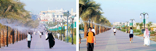 وعلى الرغم من قصر مسافة ممر المشاة في شار الأمير ماجد بن عبدالعزيز إلا أن الممر الذي تبلغ مساحته 7750 متراً مربعاً يشهد حضوراً مكثفاً من قبل الراغبين في ممارسة رياضة المشي، وقامت الأمانة بتجميل الممر بـ 42 عموداً للإنارة، و47 نخلة وشجرة، فيما يشهد هو الآخر ممر المشاة في شارع البلدية بحي العريجاء بحضور قوي خاصة وأن الممر يخدم الأحياء الغربية للعاصمة ويبلغ طول الممر 600 متر فيما يبلغ عرضه 21 متراً، ومساحته تقدر بـ 12720 متراً.