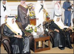 أكد صاحب السمو الملكي الأمير نايف بن عبدالعزيز وزير الداخلية أن السياسة الحكيمة لقيادة هذه البلاد وتكاتف الشعب والتفافه حول قيادته مكن الدولة من أن نكون دولة مستقرة آمنة مطمئنة.وخلال استقباله مساء أمس في مكتبه بجدة أصحاب السمو والفضيلة والمعالي وقادة القطاعات الأمنية وكبار مسئولي وزارة الداخلية من مدنيين وعسكريين وجمعاً من المواطنين الذين قدموا للسلام على سموه وتهنئته بعيد الفطر بحضور صاحب السمو الملكي الأمير أحمد بن عبدالعزيز نائب وزير الداخلية وصاحب السمو الملكي الأمير محمد بن نايف بن عبدالعزيز مساعد وزير الداخلية للشئون الأمنية، قال سموه: نحن للأسف في هذا العالم نعيش في عالم مضطرب، سواء من حولنا أو بعيدا عنا، لكن الحمد لله بفضل الله أولا ثم بفضل سياسة القيادة الحكيمة.