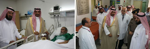 قام محافظ شقراء مران بن قويد يرافقه مدير شرطة شقراء بالإنابة محمد بن عبدالله الباهلي بزيارة لمستشفى محافظة شقراء وذلك لتهنئتهم بعيد الفطر المبارك وكان في استقبالهم نائب مدير مستشفى شقراء العام عيد عياد العصيمي حيث تجول المحافظ ومرافقوه في أجنحة التنويم وقدم للمرضى التهنئة بعيد الفطر المبارك متمنياً لهم الشفاء العاجل وقدم لهم هدية لجنة أصدقاء المرضى المقدمة بمناسبة العيد, كما تجول في قسم الإسعاف واطمأن على سير العمل والخدمات المقدمة.