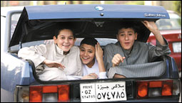 احتفلت مصر صباح أمس الأربعاء بأول أيام عيد الفطر السعيد، وفي الصورة ثلاثة صبية مصريين متجهين إلى مصلى العيد بالقاهرة في شنطة سيارة مبتهجين بهذه المناسبة السعيدة رغم المخالفة المرورية لما فعله بهم والدهم * (ا.ف.ب) |