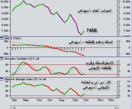 وكشف مسار السوق خلال الفترة الماضية تأثره بالأسواق العالمية ومجاراته لها مجارة يومية حيث يتضح ذلك من خلال تحركات مؤشرات الشركات وهذا غير مستغرب على بعض الشركات كالمصارف وعلى بعض الشركات متعددة الاستثمار ولكن اللافت للانتباه هو الشركات التي لا علاقة لها بذلك كالأسمنت والشركات العقارية المحلية كدار الأركان وجبل عمر ومكة وطيبة وغيرها من الشركات التي ينصب نشاطها بصورة كاملة على المشروعات المحلية، مما يؤكد أن تراجعها يعد تراجعاً غير مبرر. ومن المنظور الفني فإن مؤثرات السوق تعد في مناطق تشبع فيها السوق من البيع وفي انتظار الشراء ومعظمها في مناطق منخفضة وغير متضخمة خاصة المؤشرات السريعة مثل الآر.س.آي والاستوكاستك وبعض المتوسطات القريبة مثل متوسط 5 أيام ومتوسط 7 أيام على المدى اليومين إلا أن المؤشرات البطيئة لا تزال في تقاطعاتها السلبية ولم تعط تقاطعاً إيجابياً مثل الماكد على المدى الأسبوعي وليس المدى اليومي ومثل تقاطع المتوسطات (50- 100- 200) تقاطعاً سلبياً وترتيباً غير إيجابي وقد لا تبدأ الإيجابية عليها ما لم يتجاوز المؤشر مستوى 8345 خلال الأسابيع القادمة، إلا أن تجاوز المؤشر هذا المستوى والثبات أعلى منه لعدة أيام يعد بداية الإيجابية حيث إنه يمثل متوسط 50 يوماً وهو المتوسط الذي ينتظر الكثير من المتداولين تجاوز المؤشر إلى قيمته وهذا يستوجب زيادة قيمة التداول والبقاء على الأقل بين 6 و8 مليارات وعدم تراجعها مرة أخرى لما دون 4 مليارات. ورغم وجود المؤشر في مستوى قاعي جيد ورغم وجود الكثير من الشركات في مناطق متدنية إلا أنه لا بد من مراقبة إغلاقات الأسواق العالمية وخصوصاً الأسواق الأمريكية التي لم نلحظ تأثرها إيجاباً بعد موافقة مجلس النواب على خطة الدعم التي طرحت سابقاً بضرورة مساندة الاقتصاد وإنقاذه بضخ 700 مليار تم الموافقة على تقسيمها إلى ثلاثة أقسام، إلا أن هذا التقسيم وتلك الآلية ربما لم ترض الكثير من المتابعين والمتداولين ولهذا لم تتفاعل تفاعلاً إيجابياً بعد الموافقة بل تراجع الكثير منها وبهذا لا بد من مراقبة تلك الأسواق ومراقبة إغلاقاتها اليومية والأسبوعية وبخاصة من المضارب اليومي، أما المستثمر فقد تكون هناك شركات في مناطق جذابة في أسعارها ومكرراتها ويفضل في مثل هذه الحال الدخول التدريجي بجزء من السيولة مع ضرورة عدم الزج بكامل السيولة مهما كانت الإغراءات تحسباً لأي طارئ قادم.