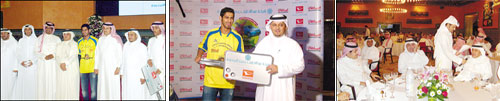 هذا وقد شهد برنامج الحفل الضخم حضور عدد كبير من الشخصيات الرياضية تقدمهم أمين عام الاتحاد السعودي فيصل عبد الهادي وطارق كيال ورئيس نادي الأهلي السابق أحمد المروزقي والإعلامي المخضرم فريد مخلص بالإضافة إلى لفيف كبير من رجالات الإعلام المرئية والمقروءة.. فيما جاءت فقرات الحفل بعدد من الكلمات التي ألقاها رعاة الحفل بالإضافة إلى اللاعب المُحتفى به سعد الحارثي الذي أبدى خلال كلمته بالغ سعادته بهذه الجائزة التي حصل عليها من خلال التصويت الذي قامت به الجماهير حيث أشار إلى أن هذه الجائزة سوف تعطيه المزيد من الإصرار على تقديم أفضل المستويات خلال الفترة المقبلة.. وأضاف الحارثي بأن هذه المسابقة لاختيار أفضل لاعب لم يعلم بها إلا في منتصف الشهر الماضي رغم انطلاقها بداية الموسم الرياضي، وبعد كلمة الحارثي انطلقت فرقة المجس الشعبية بترديد الأهازيج الشعبية احتفاءً بنجم الأمسية سعد الحارثي.. يُذكر أن الجائزة التي تحصل عليها الحارثي هي عبارة عن سيارة دايهاتسو.