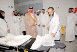 وقد اطلع سموه في بداية الجولة على مجسم المدينة واستمع إلى شرح عن مكونات المدينة والمقرات الطبية والفنية والإدارية والمساندة التي تضمها المدينة، ثم تجول سموه في مركز الأمير سلطان لأمراض الدم والأورام واستمع سموه إلى شرح تفصيلي عن تجهيزات المركز من مدير المركز الدكتور عبد العزيز الحميضي، بعد ذلك قام سمو مساعد رئيس الهيئة العليا لتطوير منطقة حائل بجولة على مركز الأمير سلمان لطب وجراحة القلب، ثم اطلع سموه على قسم العناية المركزة لحديثي الولادة كما اطلع سموه على الاستوديو الخاص بإنتاج برامج التوعية الصحية والتثقيف، بعد ذلك عقد سموه اجتماعا مع الدكتور العمرو والحميضي وتم خلال الاجتماع مناقشة متطلبات إقامة مركز لأمراض الدم والأورام في منطقة حائل وآليات إنشاء مثل هذه المراكز واستقطاب المتبرعين والممولين من رجال الأعمال والخيرين، وأكد سموه حاجة منطقة حائل الماسة لتطوير احتياجاتها من الخدمات الطبية لتوفير مثل هذه المراكز واعتبر سموه المراكز المتوافرة في مدينة الملك فهد الطبية نموذجاً لإمكانية تنفيذ مراكز مماثلة لها في منطقة حائل.
