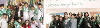 مع بداية هذا الأسبوع وبنات شقراء في مختلف المدارس والمراحل وحتى رياض الأطفال احتفلن باليوم الوطني ببرامج ساهم فيها كل من الأشراف التربوي النسائي ومديرات المدارس والمعلمات إضافة الى الطالبات اللآتي تفاعلن بشكل كبير حيث تغير لباسهن الى اللون الأخضر بشعارات حملت الولاء والحب لهذا الوطن كما اشتملت فعاليات الاحتفال على النشرات والمطويات والمقالات في الإذاعة المدرسية وغرس حب الوطن والانتماء إلية من قبل المعلمات أثناء الحصص الدراسية . كما أكد مدير تعليم البنات الدكتور صالح الدوسري على أن البرامج أبدعت الطالبات والمعلمات في إعدادها وتنفيذها وذلك من خلال زياراته المسائية للمدارس للمتابعة. كذلك احتفل بنين رفحاء في مختلف المدارس والمراحل بهذه المناسبة الوطنية الغالية.
