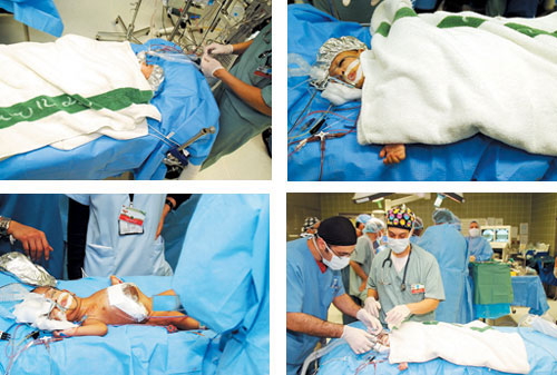 تجدر الإشارة إلى أن 19 طبيباً بقيادة الدكتور الربيعة قد باشروا ببدء العملية، يساندهم 3 فنيي تخدير و23 ممرضاً وممرضة أولى مراحل العملية 20 لفصل التوائم السياميين.