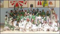 يذكر أن الطلاب بالمدرسة لبسوا الزي الأخضر والأبيض منذ بداية حضورهم للمدرسة في مشهد رائع وجميل يعكس ارتباط الطالب بوطنه وعشقه لشعاره.