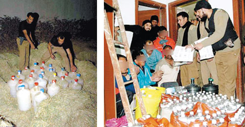 جاء ذلك عندما توفرت معلومات بحثية لقسم البحث والتحرى بقوة المهمات والواجبات الخاصة مفادها قيام مجموعة من العمالة الهندية بامتهان تصنيع الخمور وترويجها وحيازتها بحي البطحاء عليه وجه مدير شرطة منطقة الرياض اللواء عبدالله بن سعد الشهراني قوة المهمات والواجبات الخاصة بتتبع الجناة والقبض عليهم حيث تولت فرق البحث والتحري عمليات التحري عنهم حيث لوحظ كثرة تردد أشخاص من عدة جنسيات على سكنهم وبأوقات مختلفة على ضوئه تم ضبط أحدهم وبحوزته كمية من المسكر وبالتوجه لسكنه تم ضبط ثلاثة من رفاقه وهم بحالة سكر وعثر لديهم على قوارير من المسكر وبمناقشتهم قاموا بإرشاد فرق البحث عن موقع مصنعهم الكائن على طريق الخرج بداخل مزرعة معد لصناعة الخمور وترويجها ووجد المصنع داخل خزان مياه المزرعة الأرضي حيث تم ضبط جميع أدوات التصنيع كما عثر على عشر براميل سعة البرميل 200 لتر مليئة بالخمور بداخل الخزان المليء بالمسكر وبمناقشة جميع المقبوض عليهم اعترفوا قيامهم بإنشاء مصنع للخمور بهدف البيع والترويج والتعاطي وأنهم يقومون ببيعة وترويجه على الشباب والمراهقين والعمالة ثم تم تسليم جميع المقبوض عليهم وما ضبط بحوزتهم لجهة الاختصاص لاتخاذ اللازم ومازال التحقيق جارياً معهم.