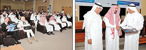 دشن معالي رئيس مدينة الملك عبدالعزيز الدكتور محمد بن ابراهيم السويل امس اللقاء الرابع للجمعية السعودية للعلوم الفيزيائية تحت شعار (نحو نشاط بحثي مميز للشباب من الفيزيائيين والفيزيائيات في المملكة العربية السعودية)، وذلك بحضور نخبة من الخبراء المحليين والدوليين المتخصصين في علم الفيزياء .