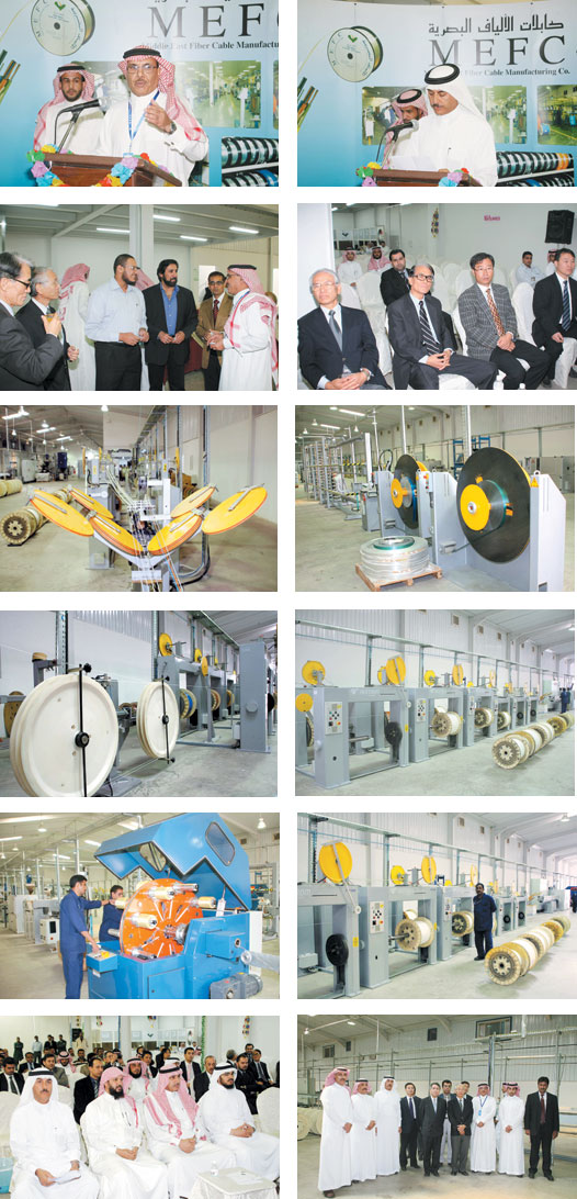 افتتح أمس المشروع الكبير لتوسعة مصنع الشرق الاوسط لصناعة كابلات الألياف البصرية بالرياض بحضور الشريك الجديد شركة فيوجيكورا Fujikgra اليابانية والرائدة عالميا في صناعة الألياف البصرية وأجهزة الاتصالات والذي سيكون له الأثر الأكبر في تعزيز قدرة شركة الشرق الأوسط على نقل التقنية اليابانية الحديثة إلى الشركة السعودية بشركة السرق الأوسط الصناعة كابلات الألياف البصرية حيث بدأ الحفل بالقرآن الكريم رتله إسماعيل العمري ثم كلمة ترحيبية للدكتور سليمان بن عبدالله الحديثي نائب رئيس مجلس الإدارة والمدير العام التنفيذي للمصنع. ذكر فيها أن التوسعة أخذت 15 شهراً وكلفت 25 مليون ريال مساهمة من الشركة تم تركيب 3 خطوط إنتاج رئيسية. الخط الأول خط التجميع والثاني خط الجدل والثالث خط العزل وجميعها من النمسا كما بين الدكتور الحديثي أن هناك خطة وهي التلوين للالياف البصرية، وخط انتاج أنواع جديدة من الكابلات صغيرة الحجم، وأصبحت الطاقة الانتاجية هي 8 آلاف كم بالسنة وبعد تركيب الخطوط الجديدة سوف تصبح الطاقة الانتاجية 25 ألف كم.