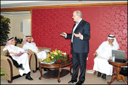 وقدم المختصون الدوليون المشاركون في هذه الورشة تصوراتهم لتأسيس حاضنات تقنية في المملكة, حيث بدأ بيتر هارمن, نائب الرئيس التنفيذي لحاضنات الأعمال المحدودة بالمملكة المتحدة بعرض لأفضل نماذج الحاضنات العالمية، والتطبيقات العالمية في هذا المجال وكيفية الاستفادة من هذه التجارب الناجحة لتطوير أعمال الحاضنات في المملكة.