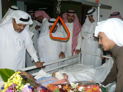 قام وكيل الوزارة للتخطيط والتطوير الدكتور عبيد سليمان العبيد ومستشار الوزير والمشرف على منطقة حائل الأستاذ محمد السبيعي والمشرف العام على المشاريع المهندس أحمد البيز بزيارة للوقوف والاطمئنان على صحة وسلامة القاص والأديب جارالله الحميد بمستشفى الملك خالد بحائل والذي يرقد على السرير الأبيض إثر تعرضه لحادث مروري وضعه بحالة صحية وصفت بالخطرة لتعرضه لكسور مضاعفة جراء الحادث في حائل.من جانبه نقل الدكتور عبيد العبيد صادق مواساة وزير الصحة الدكتور حمد المانع معرباً عن بالغ أسفه تجاه ما حل للحميد متمنياً له الشفاء العاجل ومقدمين له بعد ذلك الهدايا وباقات الورد سائلين المولى - عز وجل - أن يكتب له الشفاء العاجل.