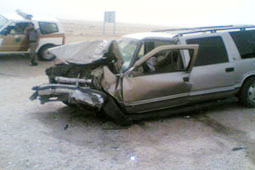 أصيب رجلان وامرأتان إثر تصادم سيارة من نوع جمس (صالون) يستقلها رجل كبير في السن ومعه زوجته وابنته، وسيارة من نوع سوزوكي غمارتين يستقلها قائدها فقط، وذلك في تقاطع طريق دخنة - الدحلة - الرس هذا ولقد لحق بسائق السيارة إصابات متعددة بالرأس وبعض أجزاء جسمه، فيما أصيب قائد الصالون بإصابات خطيرة وأصيبت المرأتان بإصابات متعددة، هذا ولقد تم إسعافهم عن طريق المواطنين لنقلهم لمركز صحي دخنة الذي قام بنقل المصاب الأول للمستشفى، فيما نقل المصاب الآخر بواسطة سيارة إسعاف مركز صحي الشبيكية بعد إسعافه بمركز دخنة، أما المرأتان فتم إسعافهما بواسطة ذويهما بعد عمل الإسعافات الأولية لهن بدخنة، فيما باشر الحادث الدفاع المدني بدخنة ومخفر شرطة الشبيكية ومرور محافظة الرس.