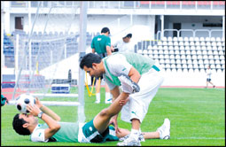 أجرى المنتخب السعودي الأول لكرة القدم عصر أمس تدريباته على استاد الأمير فيصل بن فهد بالرياض ضمن استعداداته الحالية لملاقاة كوريا الجنوبية يوم الأربعاء القادم في التصفيات النهائية المؤهلة لكأس العالم 2010م.