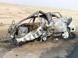 لقي معلم وطالب مصرعهما صباح أمس احتراقاً إثر اصطدام سيارتهما وجهاً لوجه من نوع كامري موديل (2007) على طريق مركز الملقا - أم طليحة اتجاه واحد (90) كم. وكانت غرفة عمليات الدفاع المدني في محافظة المذنب قد تلقت بلاغاً صباح أمس السبت يفيد بجود حريق في سيارتين، وعلى إثره تم توجيه فرقة، إضافة إلى المعدات اللازمة حيث تمكن رجال الدفاع من الوصول للموقع بعد ساعة من الزمن؛ نظراً لبعد المسافة ولعدم وجود مركز للدفاع المدني من الجهة الجنوبية يخدم المراكز والقرى التي تبعد عن المحافظة مايقارب 120كم وهي قرية ربيق في حين قامت فرقة الدفاع بإخماد حريق السيارتين والتي راح ضحيتها معلم كان قادماً من محافظة عنيزة متجهاً للبجادية أخرجه المواطنون من كومة الحديد أثناء اشتعال سيارته بعد وفاته، وطالب الجامعة متجه إلى مدينة بريدة والذي أخرجته الفرقة بعد قص الحديد. وقد باشر الحادث الجهات المختصة.