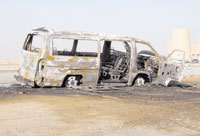 على بعد عدة أمتار من بوابة القدية احترق يوم أمس الأربعاء باص صغير يقل 11 فتاة يعتقد أنهن طالبات أو معلمات قادمات من خارج الرياض في طريق عودتهن، ومن لطف المولى عز وجل لم تصب أي منهن خلال الحادث حيث تمكن السائق الآسيوي الجنسية فور إحساسه بانبعاث دخان من السيارة من تجنيب الباص عن الطريق والتوقف فوراً مما مكن الفتيات من النزول من المركبة قبل اشتعالها بالكامل، هذا وقد حاولت (الجزيرة) من الحصول على معلومات مفصلة عن الحادث إلا أن الناطق الإعلامي للدفاع المدني بالرياض اعتذر بحجة أن الحادث يقع ضمن تغطية أمن الطرق وكذلك الحال لناطق أمن الطرق الإعلامي الذي اعتذر عن التصريح بشأن الحادث ولقد علمت (الجزيرة) من مصادرها الخاصة بأن فرقتين من الدفاع المدني بالرياض والمزاحمية باشرتا الحادث بالإضافة إلى المرور والهلال الأحمر.