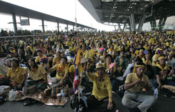 وقد باشرت السلطات التايلاندية أمس إجلاء الركاب الذين وجدوا أنفسهم أمس الأول محتجزين في مطار بانكوك الدولي حين اجتاحه آلاف المتظاهرين ضد الحكومة، وحوصر أكثر من ثلاثة آلاف راكب مساء أمس الأول في المطار وبدأ العديد من السياح الأجانب يشكون من الوضع.