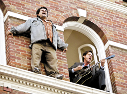 الممثلان جيم كيري (يمين) ولويس قوزمان خلال مشهد من الفيلم الكوميدي الجديد لكيري (Yes Man)حيث يتوقع أن يدخل الفيلم مهرجان جوائز الأوسكار في فبراير القادم. ] رويترز |
