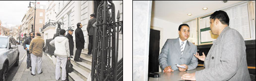 وأشاد الحاج غازي بالتعامل الراقي للمسؤولين بالسفارة لخدمة حجاج بيت الله الحرام مشيراً إلى ما تتمتع به المملكة العربية السعودية من حرفية بالتعامل مع هذا الموسم. وأشار الدكتور أدريان برادي أخصائي القلب من مستشفى جلاسكو أنه قدم لتأشيرة زيارة وتمت في وقت قصير، وحيث إن هذه زيارته الأولى للمملكة لزيارة بعض المستشفيات فإن الانطباع الأول كان مشجعاً جداً والذي أخذه من تعامله مع السفارة والقنصلية، وأثناء جولتنا في القنصلية جاءنا أحد الحجاج وقال أريد أن أشكر خادم الحرمين الشريفين والحكومة السعودية وسمو السفير والسفارة وجميع العاملين وسعادة القنصل وليد الحمودي على ما وجدناه من مساعدة وتسهيل أمور حيث نجد الجميع متواجدين لخدمتنا فجزاهم الله خيراً، ورفع يديه بالدعاء ومن الملاحظ عدم وجود ازدحام سواء أمام باب القنصلية أو داخل أروقتها.