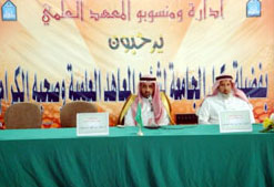 قام وكيل جامعة الإمام محمد بن سعود الإسلامية لشؤون المعاهد العلمية الدكتور بندر السويلم بزيارة إلى معهد الدوادمي العلمي يوم الأربعاء، وكان في استقباله مدير المعهد الشيخ: محمد بن سعد الجريس ووكيله ومعلمو وموظفو المعهد، حيث تفقد الدكتور السويلم فصول المعهد حاثا أبناءه الطلاب لبذل الجهد في تحصيل العلم مناقشا لهم عن الصعوبات التي تواجههم مارا في جولته على مرافق المعهد من معامل الحاسب ومصادر التعلم والصالة الرياضية، بعد ذلك ألقى فضيلته محاضرة عن خطورة اتباع الفرق الضالة والانزلاق معهم في فتنة التكفير وحث أبناءه الطلاب على الالتفاف حول ولاة الأمر وعلماء هذه البلاد وفي ختام محاضرته قدم مدير المعهد هدية رمزية للدكتور بندر عبارة عن بعض ما أنتجه المعهد من أفلام وثائقية وبرامج تعليمية.