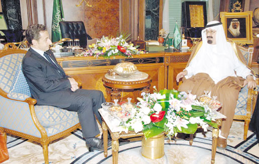 بحث خادم الحرمين الشريفين الملك عبدالله بن عبدالعزيز آل سعود وفخامة الرئيس نيكولا ساركوزي رئيس جمهورية فرنسا رئيس الدورة الحالية للاتحاد الأوروبي تطورات الأزمة المالية التي يشهدها العالم حالياً والجهود الدولية المبذولة للحد من تأثيرها السلبي على الاقتصاد العالمي والتي كان من بينها اجتماع القمة لمجموعة العشرين الاقتصادية التي شارك فيها الزعيمان مؤخراً في واشنطن وما نتج عن تلك القمة من قرارات.