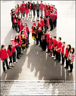 مجموعة من الناشطين القريغزستانيين يشكلون شعار اليوم العالمي لمحاربة الإيدز الذي صادف أمس الأول من ديسمبر. |