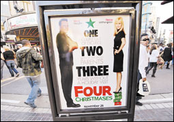 تصدر الفيلم الكوميدي الجديد (أربعة أعياد ميلاد) إيرادات الأفلام بأمريكا الشمالية حيث تشير التقديرات التي جمعتها رويترز إلى أن الفيلم حقق ابتداء من يوم الجمعة 31.7 مليون دولار. وتدور قصة الفيلم حول الزوجين براد وكايت اللذين لم يتمكنا كعادتهما من السفر بعيداً عن عائلتيهما ...>>>... | |