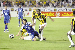 أكد سمو الأمير نواف بن سعد نائب رئيس نادي الهلال أن فريقه قدم مباراة جيدة أمام الاتحاد تحصل على فرصة مؤكدة لم يكتبها الله سبحانه وتعالى أن تلج المرمى الاتحادي الذي هو الآخر حافظ على فارق الثلاث نقاط بيننا وبينه في سلم الترتيب. وأضاف سموه: (فريقنا دخل المباراة برغبة الفوز وليس التعادل والدليل الهجمة الأخيرة والمؤكدة في الوقت بدل الضائع التي تؤكد ضغطنا على المرمى الاتحادي طوال المباراة برغبة البحث عن الفوز)، وأضاف: لم نغضب لحصولنا على نقطة واحدة أمام فريق قوي يلعب على أرضه وبين جماهيره وبإذن الله نستطيع التعويض في المباريات القادمة وتقليص الفارق ووضع الهلال في المركز اللائق له في قمة الترتيب. والفرصة لا تزال كبيرة في مباريات الدور الثاني وفريقنا وضعه مطمئن جداً فنياً وعناصرياً.