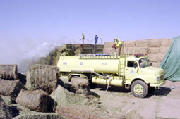 شب حريق في أعلاف ملبنة بأحد المشاريع الزراعية الكبيرة غرب ساجر حيث تقدر كمية الأعلاف المخزنة بحوالي خمسين ألف بالة كبيرة وقد بذلت فرقة الدفاع المدني بمركز ساجر جهوداً جبارة في السيطرة على الحريق وعزل الاعلاف المحترقة وقد شاركت في اخماد الحريق وحدة اطفاء من ...>>>... | |