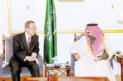 استقبل صاحب السمو الملكي الأمير سلطان بن عبدالعزيز آل سعود ولي العهد نائب رئيس مجلس الوزراء وزير الدفاع والطيران والمفتش العام بمقر إقامة سموه في مدينة نيويورك يوم أمس الأول معالي الأمين العام للأمم المتحدة بان كي مون. وفي بداية الاستقبال ثمن الأمين العام للأمم المتحدة دعوة ...>>>... | |