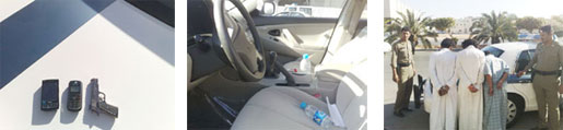 أطاحت شرطة منطقة الرياض مساء أمس بعصابة مكونة من ثلاث أشخاص تخصصت في سرقة عملاء البنوك حيث يستقلون سيارة بيضاء نوع كامري مسروقة من صاحبها بالقوة بعد صدمه من الخلف جاء ذلك عندما تلقت غرفة عمليات دوريات الأمن بمنطقة الرياض مساء أمس بلاغاً من أحد الوافدين عن محاولة تعرض شنطة كان يحملها أثناء خروجه من إحدى البنوك المحلية الواقعة بطريق المدينة بحي البديعة غرب مدينة الرياض وعندما قاوم الجناة لاذوا بالفرار وبعد تلقي البلاغ وجهت غرفة العمليات الفرق الميدانية بتتبع السيارة المذكورة والقبض على الجناة حيث شوهدت السيارة واقفة وبداخلها الجناة أمام البنك على شارع حمزة بالسويدي الغربي ينتظرون خروج أحد عملاء البنك لسرقته وعند مشاهدتهم لفرق الدوريات ارتكبوا الفرار تم متابعتهم والإطاحة بهم عند سوق الخضار بحي البديعة الغربية حيث عثر بحوزتهم على قارورتين مسكر نوع (عرق) وجهازي جوال ومسدس لتهديد عملاء البنوك لحظة خروجهم من البنك وسرقة ما بحوزتهم من مبالغ مالية صاحب السيارة الكامري حضر للموقع وتعرف على الجناة وأفاد أنهم قاموا بسرقة سيارته منه بالقوة بعد صدمه من الخلف سلم الجناة وما ضبط بحوزتهم لمركز شرطة السويدي الذي باشر بفتح ملف التحقيق مع الجناة ومازال التحقيق جارياً.