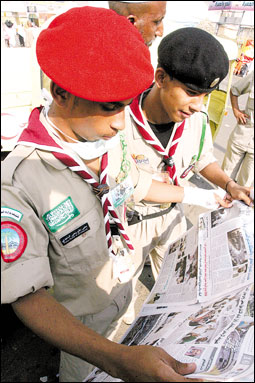 أحد شباب الكشافة يطالع
