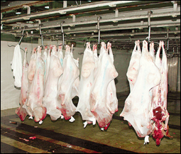 مجموعة من الذبائح المذبوحة ويقودها سائق من الجنسية العربية، حيث تم إتلافها