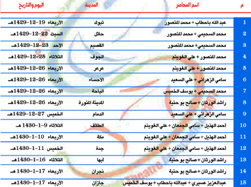 بدأت جمعية المسرحيين السعوديين منذ أمس الأربعاء في عقد لقاءات الجولة التعريفية التي ينفذها أعضاء مجلس الإدارة في مختلف مناطق ومحافظات المملكة للتعريف بالجمعية وما أنجزته خلال الفترة الماضية من مرحلة التأسيس وسوف تكون المحطة الأولى للجولة في منطقة تبوك حيث عقد (البارحة) كل من محمد المنصور (أمين عام الجمعية) ...>>>... | |