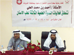 رعى مدير الشؤون الصحية بالقريات أحمد بن محمد العلي انطلاقة الندوة العلمية الثالثة لطب الأسنان في قاعة المحاضرات بمركز طب الأسنان التخصصي والتي تستمر لمدة يومين شارك فيها أكثر من 80 مهتماً من الكادر الطبي والتمريضي. وقد بدأت الندوة بمحاضرة للدكتور طلال عويد العنزي مدير المركز تحدث من خلالها عن الحالات السريرية المتقدمة لمرضى الأسنان فيما تناولت الندوة عدة محاور في طب الأسنان أبرزها الجديد في زراعة الأسنان والأخطاء المتكررة في علاج عصب الأسنان والجديد في طرق تبييض الأسنان.