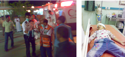 أصيب 13 شخصا في حادث مروري مروع على طريق الدرب - مربة وذلك مساء أول أمس الثلاثاء عندما ارتطمت سيارتان وجهاً لوجه. وفي التفاصيل أن سيارة يقودها شاب ارتطمت بسيارة أخرى تستقلها عائلة مكونة من 12 فردا منهم طفلان و8 نساء ورجلان مما أدى إلى تعرضهم لإصابات متفاوتة، حيث تم نقلهم جميعاً إلى مستشفى الدرب العام بواسطة ثلاث سيارات تابعة للهلال الأحمر، فيما تولى إسعاف مستوصف مربة نقل حالتين، وأشار المدير المناوب على مكتلي أنه تم على الفور أعلان حالة الطوارئ حيث تم استدعاء الأطباء والممرضين لمباشرة الحالات فيما تم نقل مصابين لغرفة العمليات أثر تعرضهم لنزيف، وأكد أن حالات المصابين مستقرة فيما تخضع حالتان تحت الملاحظة.