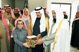 حيث قدم مدير الفرع شرحاً وافياً عن المعرض واهدافه ومحتوياته وفي الختام تسلم احد ابناء انسان الطالب عبدالله بن حمد العمار هدية رمزية.