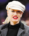 المغنية الأمريكية جوين ستيفاني خلال حضورها مباراة لكرة السلة في الدوري الأمريكي للمحترفين بين فريقي ليكرز ونيويورك نيكس وانتهت بفوز الأول. |
