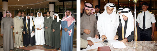 بحضور ممثل عز الخير للحراسات الأمنية الدكتور عبدالناصر الرحيمي وممثل مجموعة الحكير للألعاب الترفيهية عبدالعزيز السعيدان وراشد العصيل تم الأربعاء الماضي في فندق ماركيول بمدينة الرياض توقيع اتفاقية بين الجانبين لتتولى عز الخير مجال الحراسات الأمنية لجميع مجموعات الحكير الترفيهية.