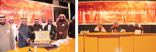 وفي نهاية اللقاء -الذي شارك في تنظيمه المشرفون التربويون والنشاط الطلابي- قدم مديرو المدارس درعاً تذكارياً للدكتور موسى العويس بمناسبة تكليفه مديراً للإدارة، سلمها مجموعة من مديري المدارس.