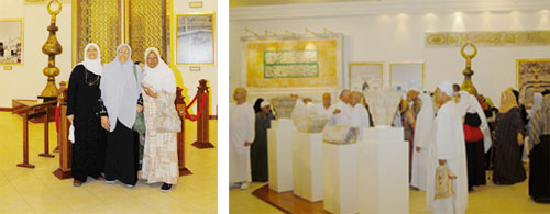 وشهد المعرض زوار من ضيوف الدولة والوفود الرسمية ومنسوبي مؤسسات وشركات خدمات الحج والعمرة ومن المواطنين والمقيمين والزوار والمعتمرين وضيوف الرحمن وقد تجاوز عدد زوار المعرض 200 ألف زائر خلال الخمس السنوات الماضية.والمعرض يتكون من 7 قاعات تشتمل على مجسمين للحرمين الشريفين وبعض المقتنيات المختلفة للحرمين الشريفين إضافة إلى المصاحف والمخطوطات والنقوش الكتابية والقطع الأثرية الثمينة والمجسمات المعمارية والصور الفوتوغرافية النادرة التي تحكي تطور عمارة الحرمين الشريفين على مر العصور والمعرض يستقبل زواره على فترتين صباحية من الساعة 8 صباحاً إلى الساعة 12 ظهراً والفترة المسائية من الساعة 4 عصراً حتى الساعة 10 مساء لإتاحة الفرصة للجميع لزيارته.