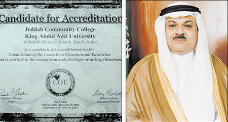 حصلت كلية المجتمع بجامعة الملك عبد العزيز بجدة على لقب (مرشح) للاعتماد الأكاديمي الأمريكي. حيث تلقت الكلية خطابا يفيد بأن اللجنة التنفيذية لهيئة الاعتماد الأكاديمي الأمريكي COE قررت في اجتماعها المنعقد في مدينة سانت لويس في الخامس من نوفمبر الماضي منح كلية المجتمع بجدة لقب المرشح للحصول على الاعتماد الأكاديمي من قبل الهيئة الأمريكية.