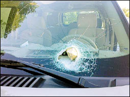 وقال المواطن عبدالعزيز الحصيني الذي تحدث ل (الجزيرة) إنني فوجئت أثناء قدومي في الاتجاه الغربي الشمالي قبل الوصول إلى الجسر المعلق بوجود مجموعة من الصبية وعددهم 3 في أعلى الجسر يحملون في أيديهم أشياء غير واضحة المعالم لبعد المسافة بينهم وبين السيارات القادمة ولكون جميع قائدي المركبات يمرون بسرعة لا تقل عن 90 إلى 120، وعند مروري أسفل المخرج شاهدت مجموعة من الحجارة في الطريق وعندما اقتربت وقع على زجاج سيارتي حجر كبير أدى إلى تهشم الزجاج الأمامي مما جعلني في موقف صعب حيث أدى إلى عدم استطاعتي الرؤية واحداث ربكة في الطريق مع السيارات الأخرى، ولولا لطف الله لوقعت كارثة وحادث لا يحمد عقباه، فقد ووقع الضرر على زجاج السيارة وأدى لبعض الخدوش في يدي كون موقع سقوط الحجارة أمام مقود السائق مباشرة.