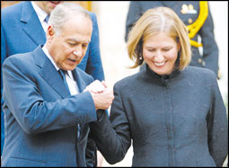 بحثت تسيبي ليفني وزيرة الخارجية الإسرائيلية مع الرئيس المصري حسني مبارك التهدئة بين إسرائيل والفلسطينيين، ورفع الحصار الإسرائيلي عن قطاع غزة، ووقف الإعتداءات الإسرائيلية على سكان القطاع. وشدد مبارك على ضرورة فتح كافة المعابر ورفع الحصار الإسرائيلي...>>>... | |